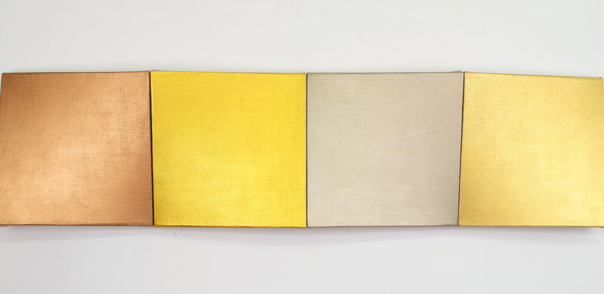 v.l.n.r.: bewegt, 2001, Öl auf Leinwand; o.T., 2000, Öl auf Leinwand; o.T., 1997, Öl auf Leinwand; o.T., 1998, Öl auf Leinwand; Stele 12, 2001, Öl auf Nessel